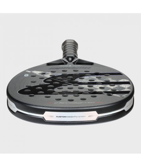 The hole pattern on a padel racket plays an important role in performance, influencing factors such as control, ball output, and power. The new hole pattern in the Hack 04 line has been redesigned with a concentric circle format, allowing for a more balanced distribution, greater flexibility across the racket face, and thus greater ball output and a larger sweet spot.